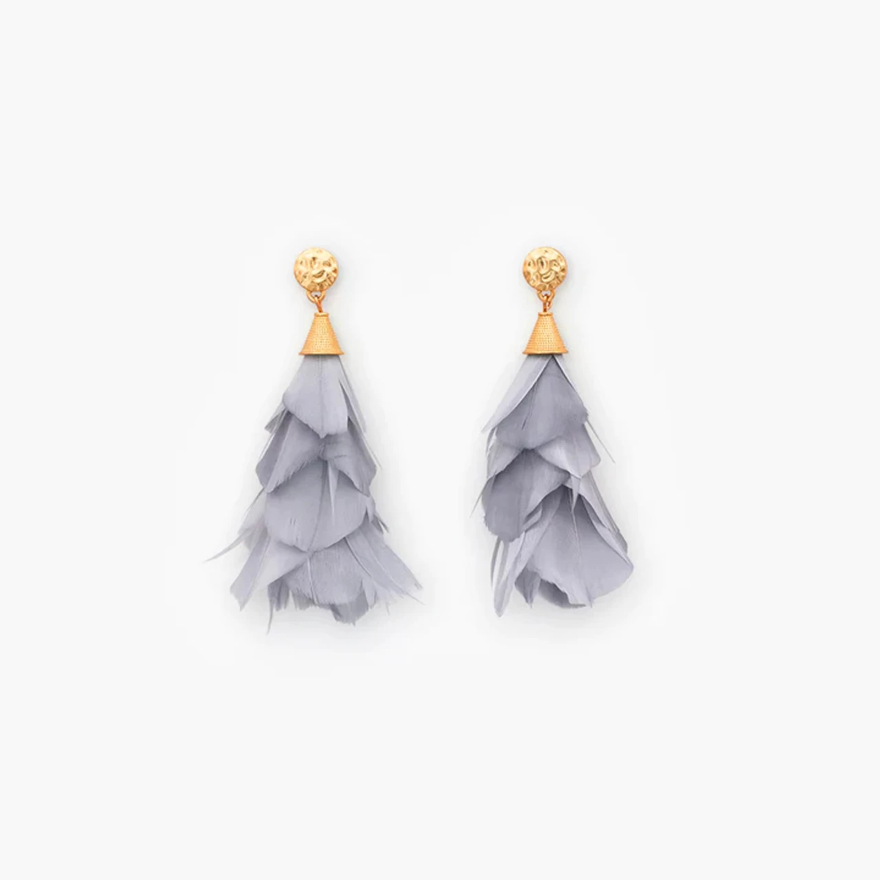 Flirty with a touch of fluff, the Queen Mary silver feather drop earrings are handcrafted by layering goose feathers to create a voluminous effect that is uniquely Brackish.