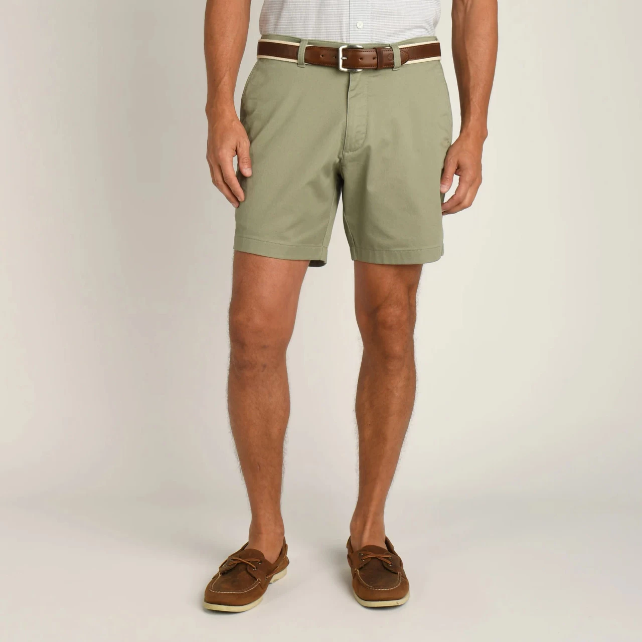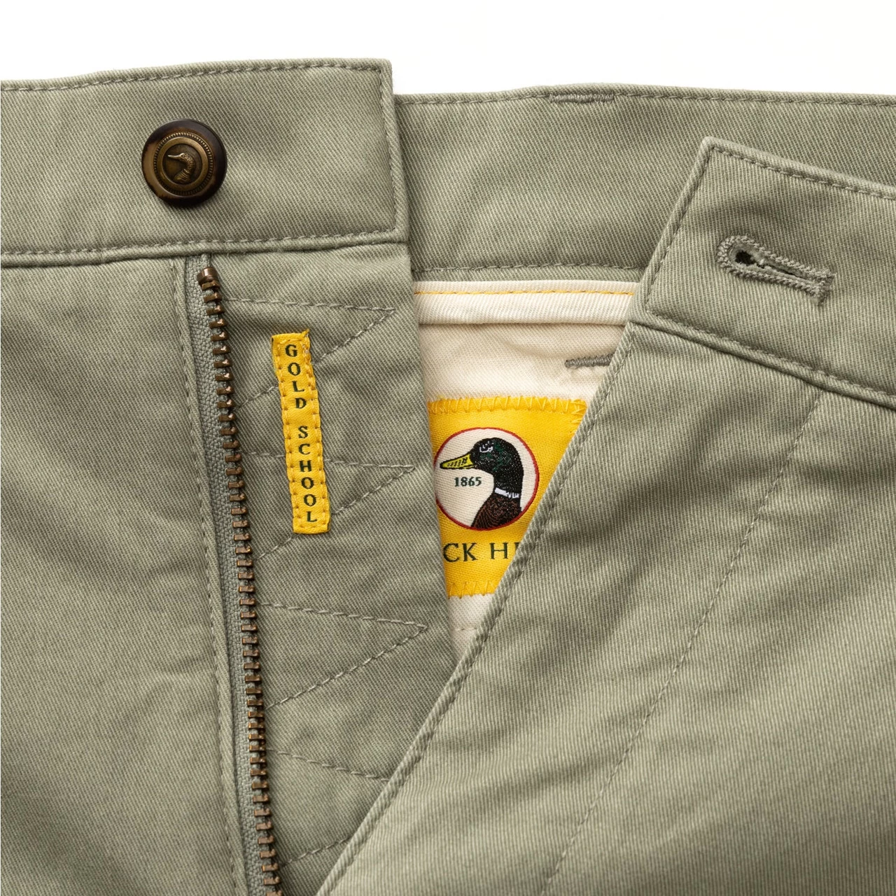 The Duck Head Gold School Short shares every detail with our full-length chino. Same signature button, same drill cloth interior, and same 7.5 oz. cotton twill with a trace of functional stretch. The 9” inseam sits perfectly above the knee making them perfect for summer days in the low country, at the beach, or on the links.