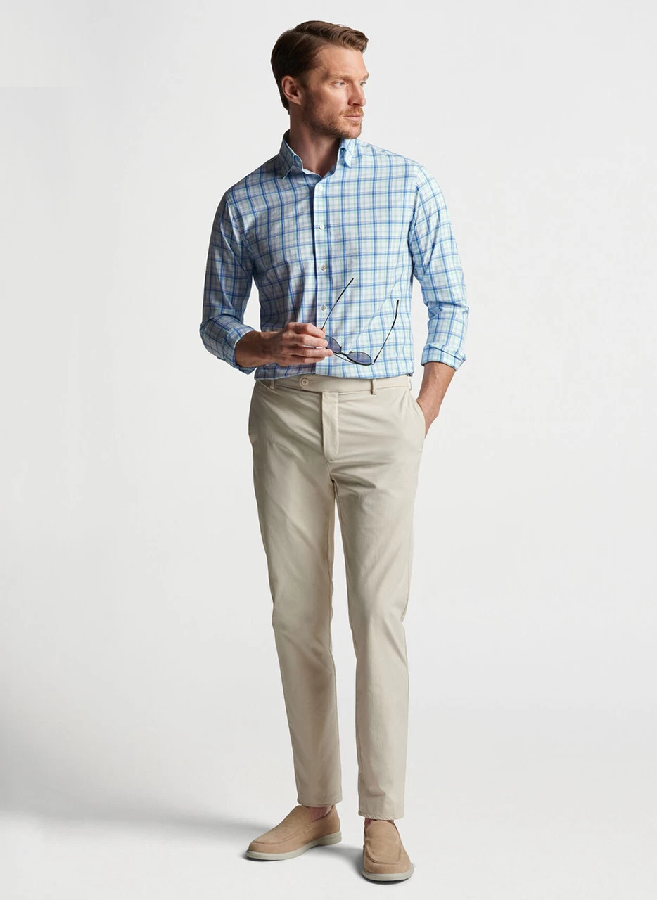 This sophisticated essential is crafted to convey the classic comfort of a poplin shirt in an innovative performance style. It features an easy-care fabric that offers two-way stretch, moisture-wicking and UPF 50+ sun protection. Finished with a spread collar, French placket and mitered cuffs.