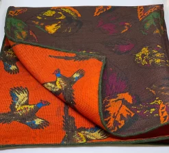 Seaward And Stearn Pheasant W/ Border Pocket Square: Navy